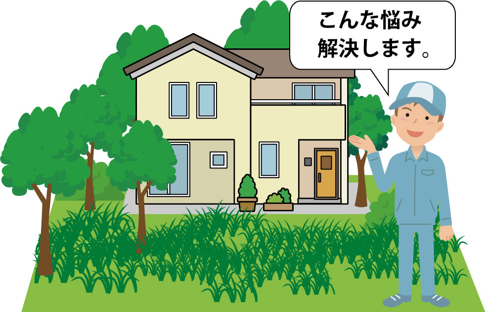 草が伸び放題・荒れ放題になると、見た目だけでなく害虫の被害だけでなく、火災や防犯上、さまざまなトラブルのもととなります。とはいえ、草刈り草むしりは労力のいる作業です。特に足腰が弱いお年寄りや、忙しい方にとっては、負担となります。住まいの便利屋ニシ建リフォームでは刈り取った雑草の処分までしっかりと対応します。